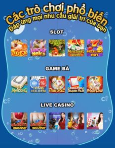 Bắn cá, Tài xỉu, Slot, game bài, live casino, xóc dĩa, bầu cua. Tiến lên miền Nam, Phỏm Mậu Binh,Poker mini game….